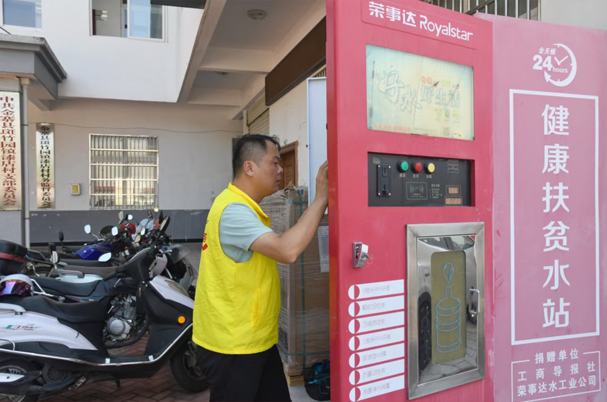 活動中,榮事達水工業(yè)黨支部發(fā)揮自身技術優(yōu)勢,組織專業(yè)維修團隊對此前捐贈給該村的凈水設備進行了全面檢修保養(yǎng),并免費更換了濾芯。這些凈水設備是榮事達水工業(yè)公司特別定制的產(chǎn)品,具備24小時自助供水功能,采用多級過濾凈化技術,能有效濾除水中的雜質(zhì)、細菌、農(nóng)藥、化肥及重金屬等有害物質(zhì),確保出水達到直飲標準。